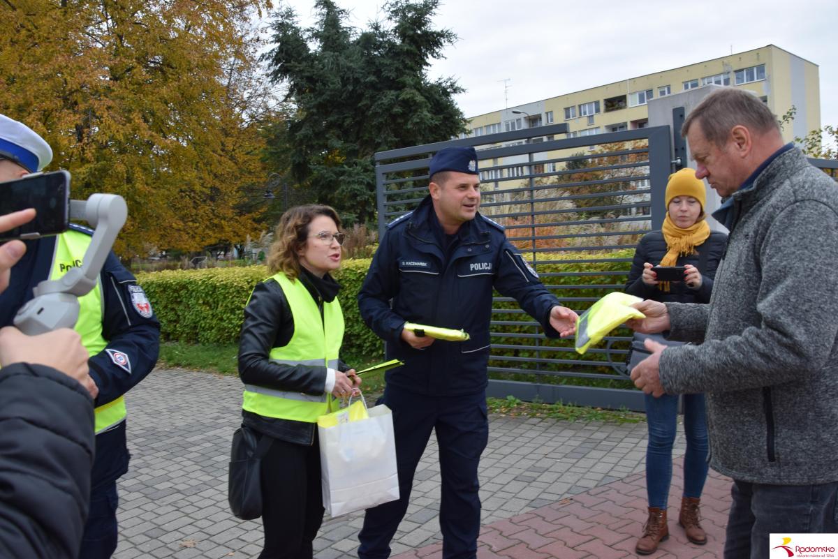 W czwartek 16 października przy targowicy odbyła się akcja profilaktyczna „Bezpieczni po zmroku”, zorganizowana wspólnie przez Miasto Radomsko i Komendę Powiatową Policji. Przedstawiciele obu instytucji rozdawali pieszym elementy odblaskowe i przypominali o zasadach bezpiecznego poruszania się po zmroku.