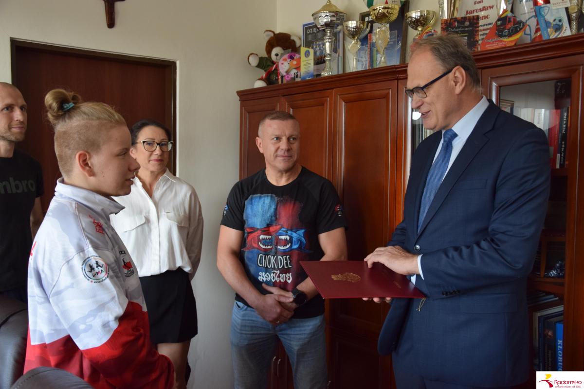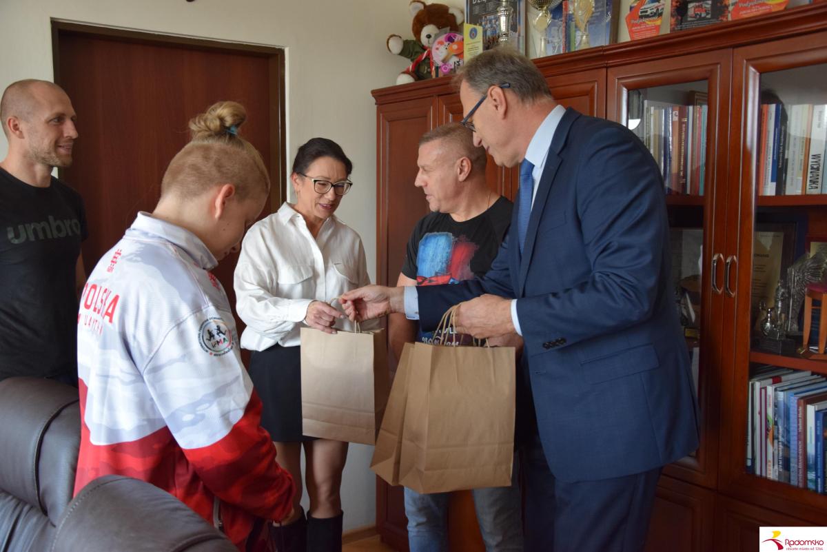 W czwartek, 23 października, w Urzędzie Miasta Radomska prezydent spotkał się z utalentowaną zawodniczką. Złożył młodej sportsmence serdeczne gratulacje, wręczył upominek i podziękował również jej trenerom za wkład w rozwój sportu w Radomsku.