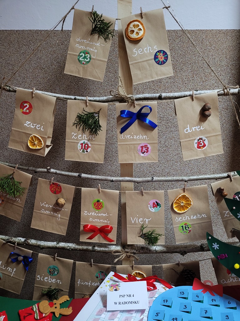 W międzyszkolnym konkursie z j. niemieckiego „Der schӧnste Adventskalender” w Publicznej Szkole Podstawowej nr 4 wzięło udział 7 radomszczańskich szkół: PSP nr 1, PSP nr 2, PSP nr 3, PSP nr 4, PSP nr 5, PSP nr 8 oraz PSP nr 10.
