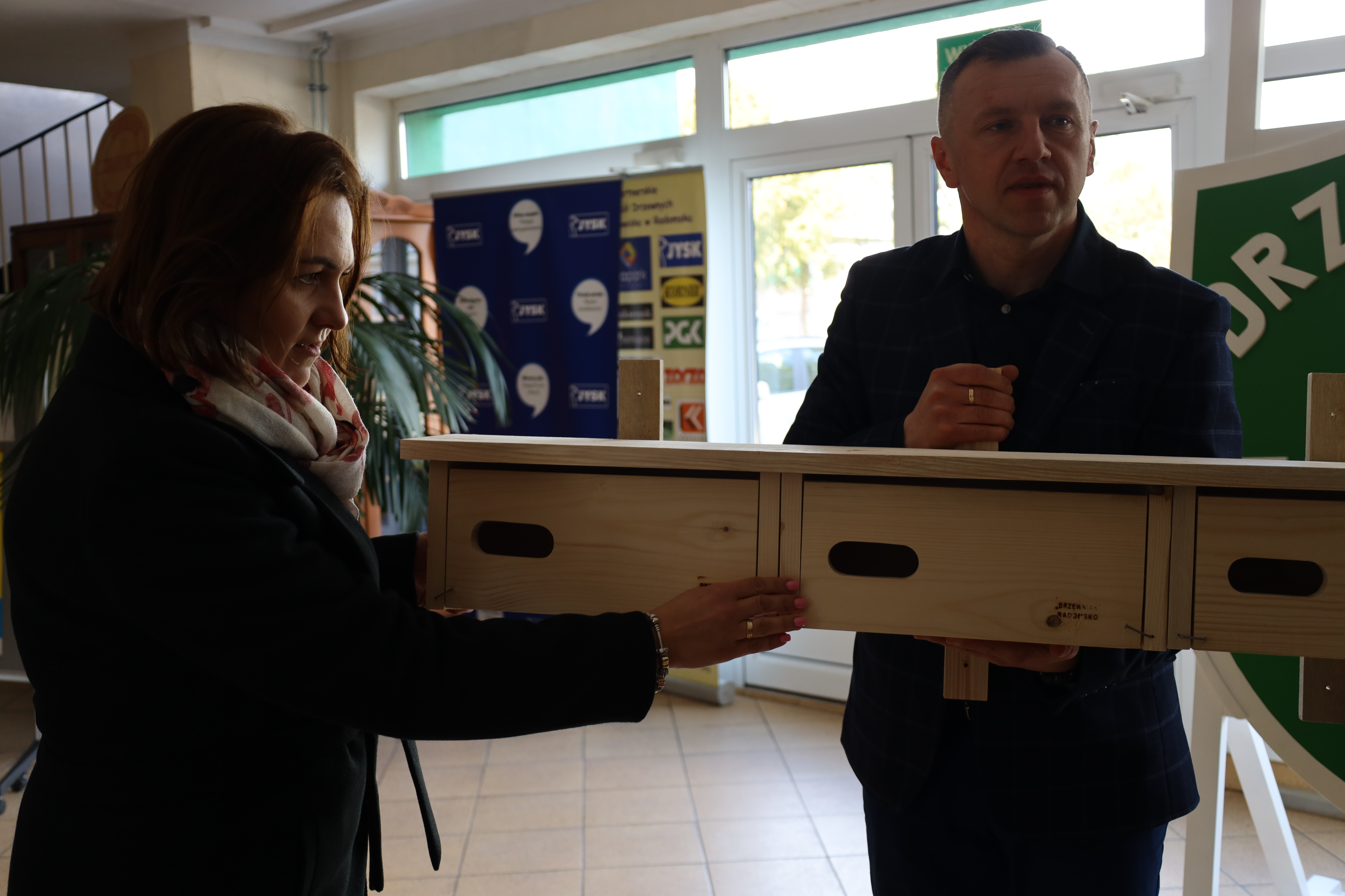 Miasto zakupiło materiał, a uczniowie „Drzewniaka” wykonali 39 podwójnych oraz potrójnych budek podczas warsztatów. Dziś gotowe domki zostały przekazane Spółce TBS.
