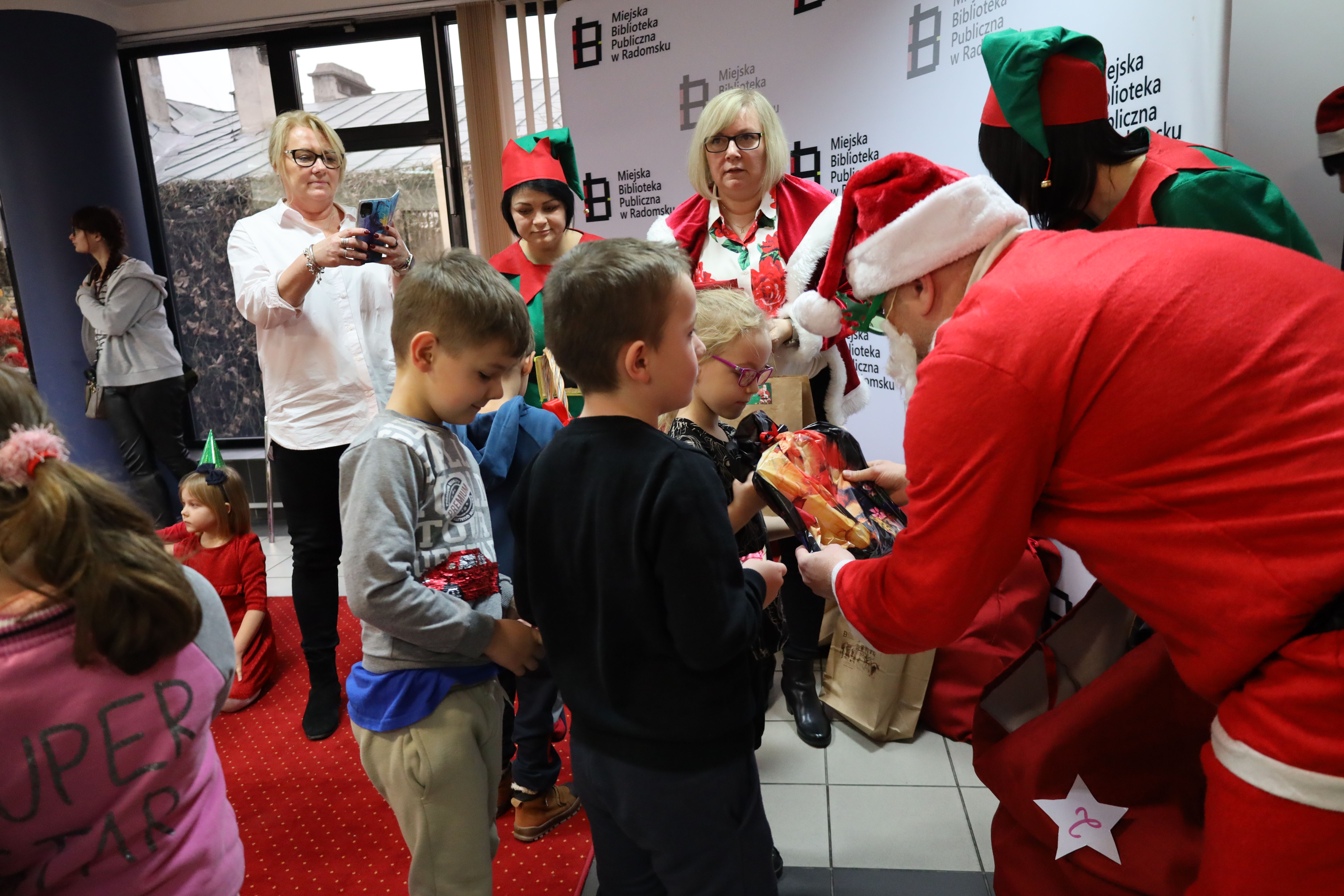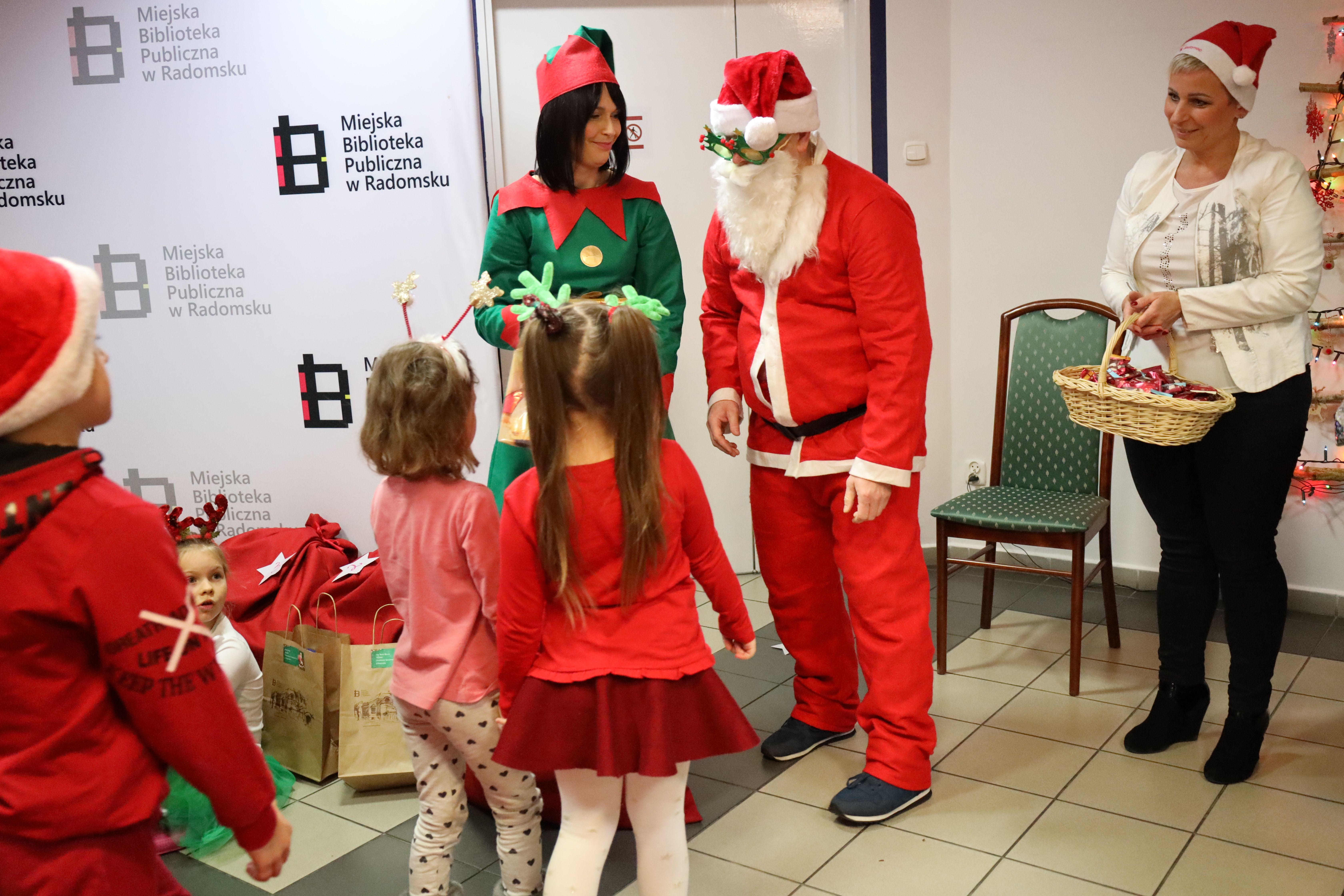 Najważniejszym punktem imprezy było spotkanie ze Świętym Mikołajem, który przybył do biblioteki z workiem pełnym prezentów. Nie zabrakło też słodkich upominków.