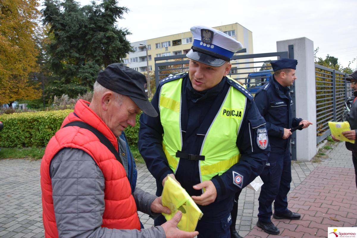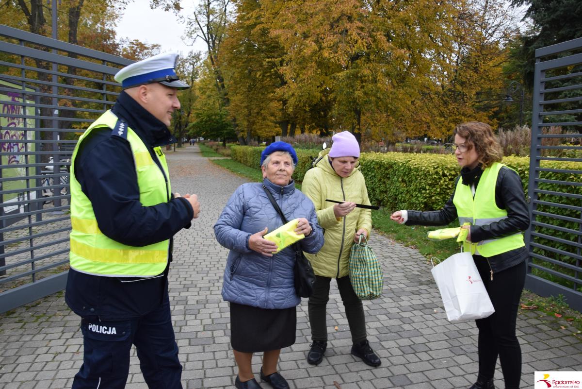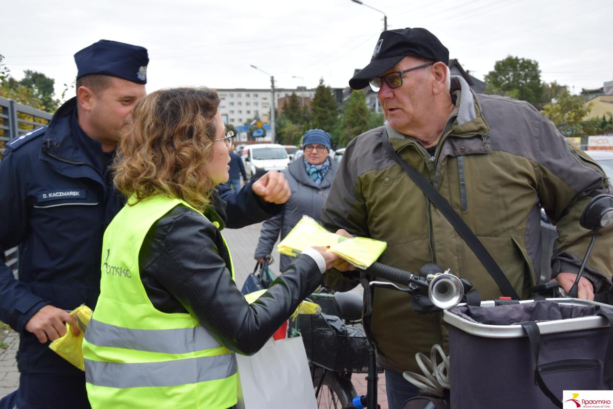 W czwartek 16 października przy targowicy odbyła się akcja profilaktyczna „Bezpieczni po zmroku”, zorganizowana wspólnie przez Miasto Radomsko i Komendę Powiatową Policji. Przedstawiciele obu instytucji rozdawali pieszym elementy odblaskowe i przypominali o zasadach bezpiecznego poruszania się po zmroku.