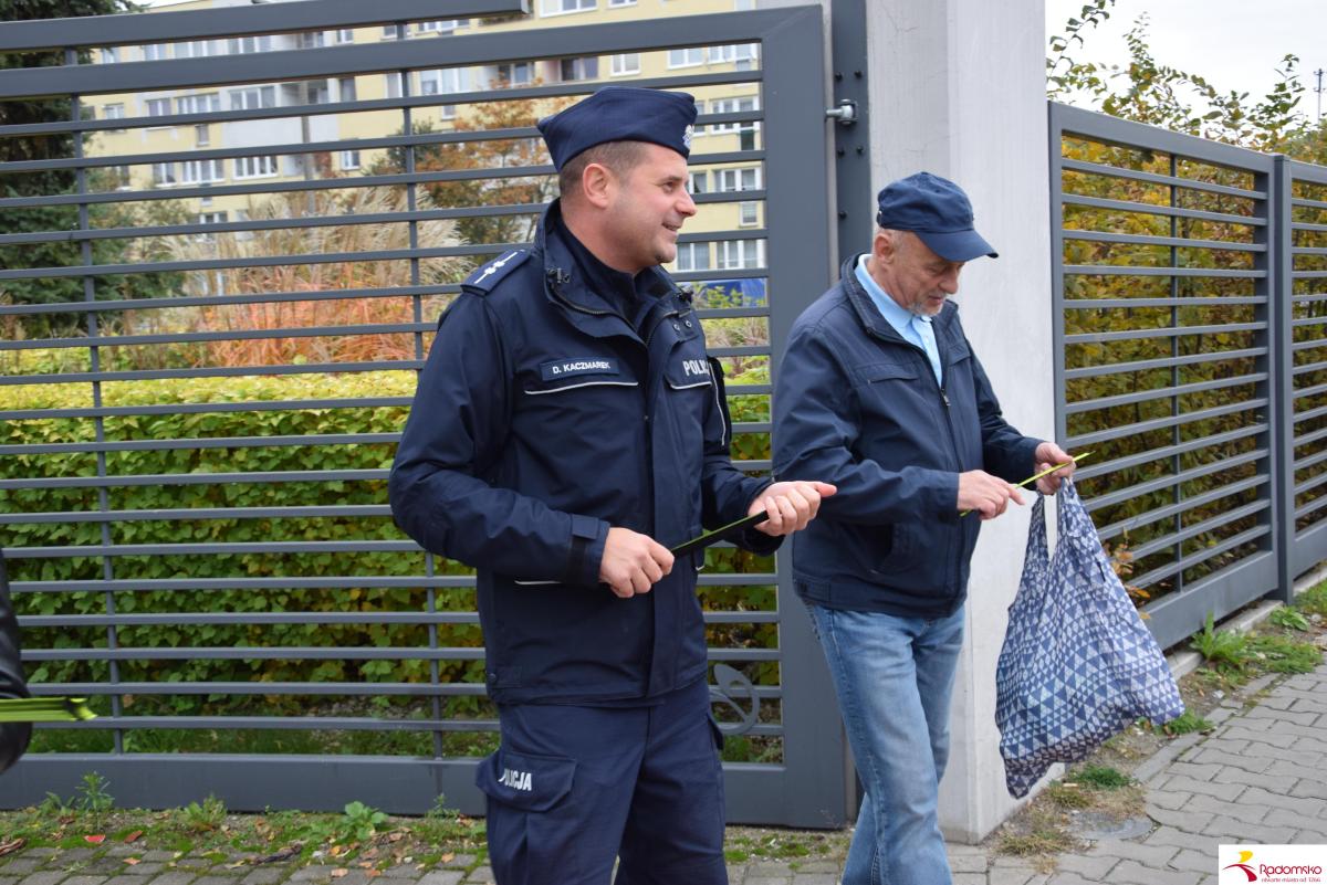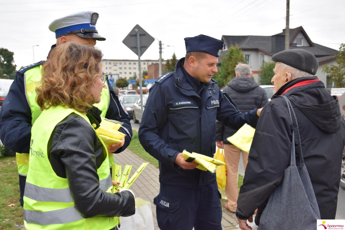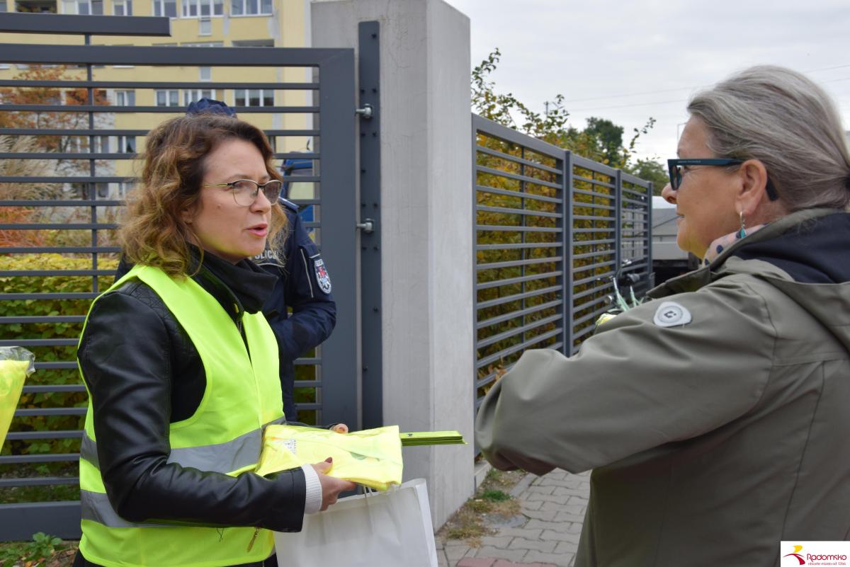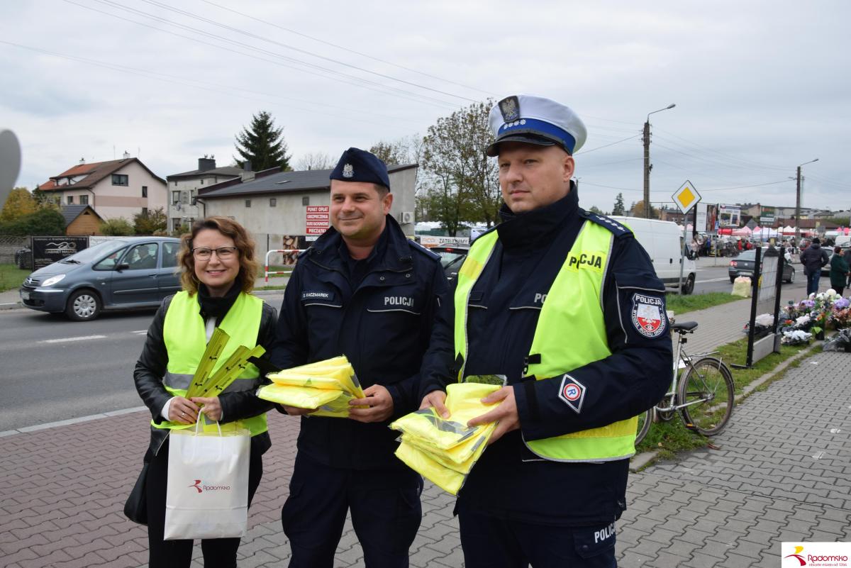 W czwartek 16 października przy targowicy odbyła się akcja profilaktyczna „Bezpieczni po zmroku”, zorganizowana wspólnie przez Miasto Radomsko i Komendę Powiatową Policji. Przedstawiciele obu instytucji rozdawali pieszym elementy odblaskowe i przypominali o zasadach bezpiecznego poruszania się po zmroku.