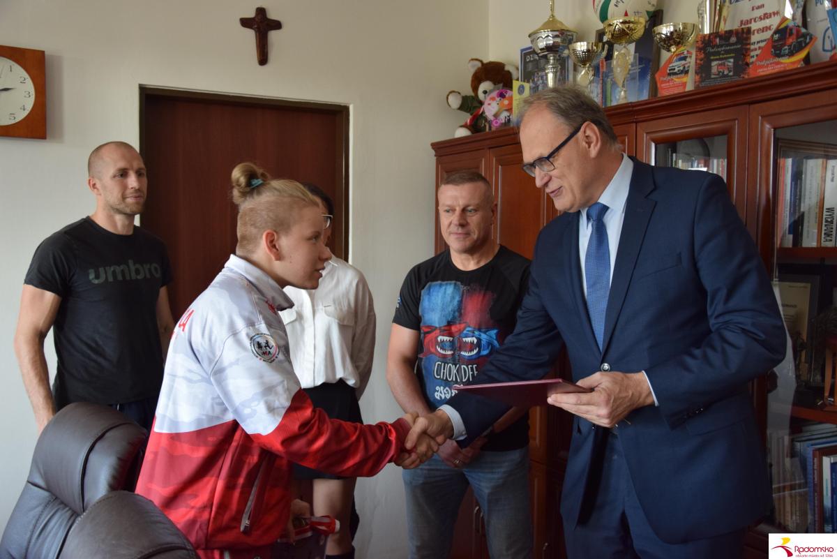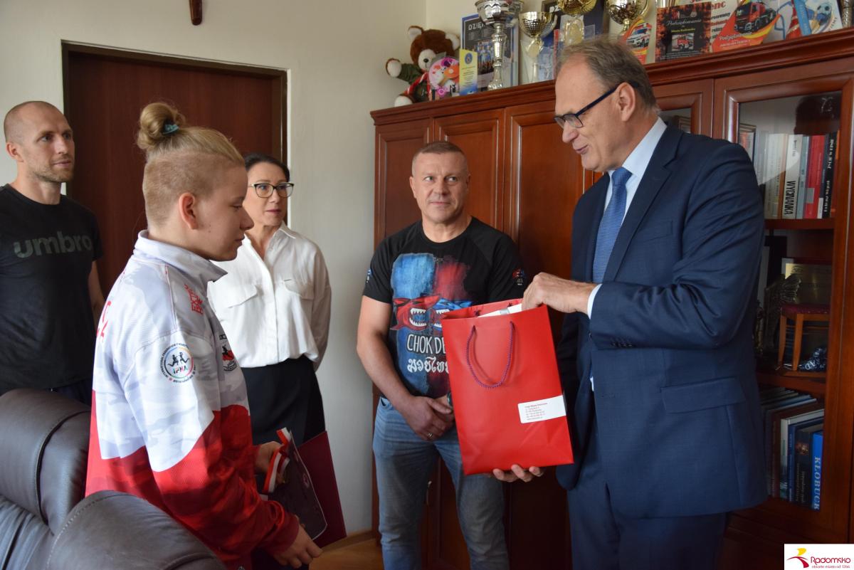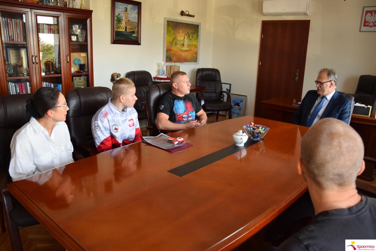 W czwartek, 23 października, w Urzędzie Miasta Radomska prezydent spotkał się z utalentowaną zawodniczką. Złożył młodej sportsmence serdeczne gratulacje, wręczył upominek i podziękował również jej trenerom za wkład w rozwój sportu w Radomsku.