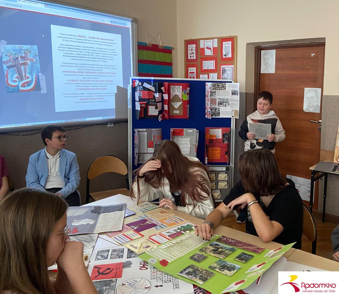 Podczas lekcji przedstawiono również założenia programu „Katyń... Ocalić od zapomnienia”, którego celem jest uczczenie pamięci 22 tysięcy ofiar poprzez sadzenie Dębów Pamięci. Uczniowie poznali sylwetki radomszczańskich bohaterów uhonorowanych w ramach tej inicjatywy.