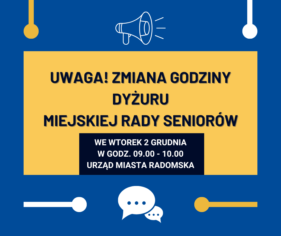 Uwaga! Zmiana godziny dyżurowania Miejskiej Rady Seniorów we wtorek 2 grudnia.