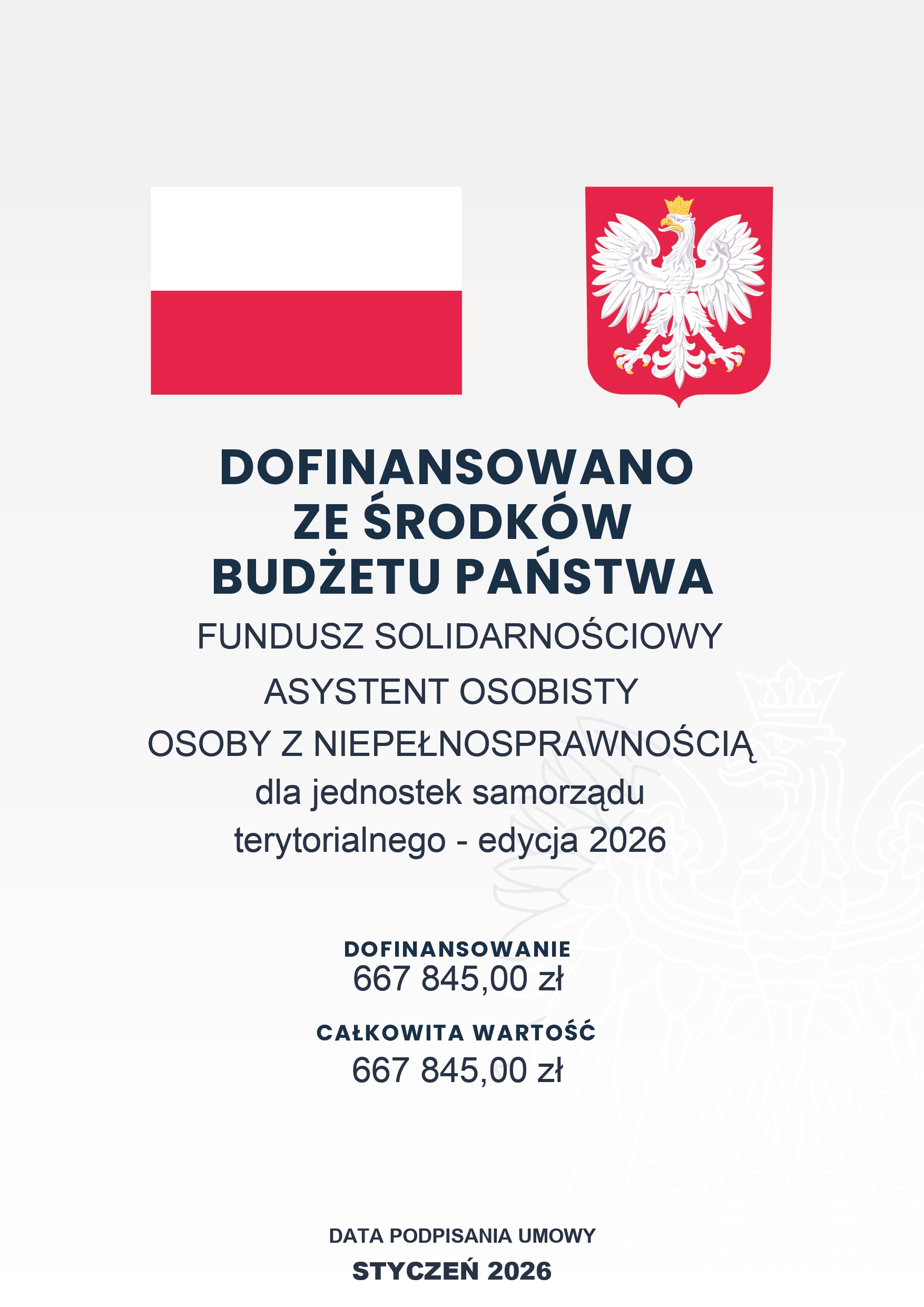Miasto Radomsko otrzymało dofinansowanie ze środków budżetu państwa w ramach Funduszu Solidarnościowego na realizację programu „Asystent Osobisty Osoby z Niepełnosprawnością" dla jednostek samorządu terytorialnego – edycja 2026.